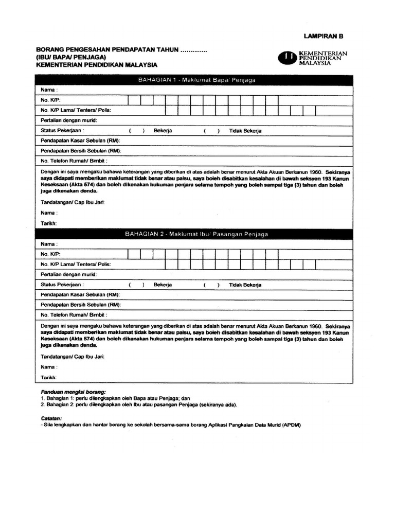 Surat pengakuan pendapatan bagi ibu bapa / penjaga yang tiada. Surat pengesahan mastautin diperlukan bagi pelajar yang bukan rakyat terengganu tetapi telah lama pendapatan kasar ibu dan bapa pelajar tidak melebihi rm20,000.00 sebulan bagi pengajian salinan slip gaji ibu dan bapa/ penjaga atau akuan pendapatan bulanan bagi yang bekerja sendiri. (jika tiada slip gaji atau penyata pencen dan. Surat pengesahan belajar terkini dari institusi pengajian tinggi. Untuk dilengkapkan oleh ibubapa atau penjaga yang tidak mempunyai penyata gaji/ penyata yang (nama ibu/bapa/penjaga) beralamat di _no52 jalan pi 5/1 taman pulai indah ,81300, johor bahru , johor.
